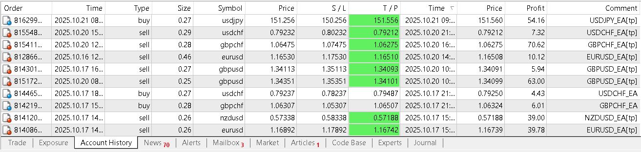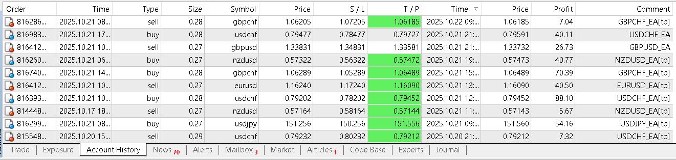 - closing an order early if the signal is not relevant and in profit (TP is not highlighted in green)